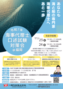 この度、関連会社である一瀬汽船株式会社主催で福岡において「海事代理士試験口述試験対策会」を開催することになりました。