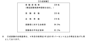 口述試験の受験者に対する合格率は94%で、例年と同様高い合格率でしたね。合格された皆様、おめでとうございました!これから実務に取り組まれる方も多いかと思います。私もその一人です。一緒に頑張りましょう!